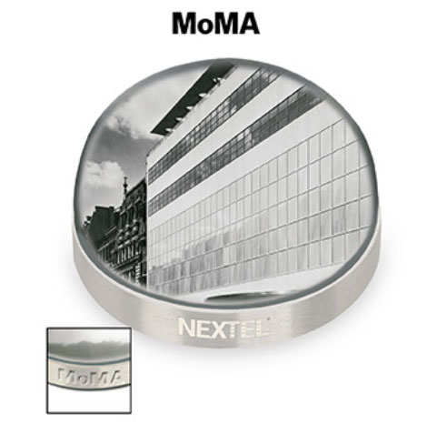- Photo dome, adhered to base with magnets, magnifies a photo. Optical quality acrylic dome and brushed nickel base with felt bottom. MoMA logo debossed on base. Proceeds from the sale of this MoMA product support the Museum programs.