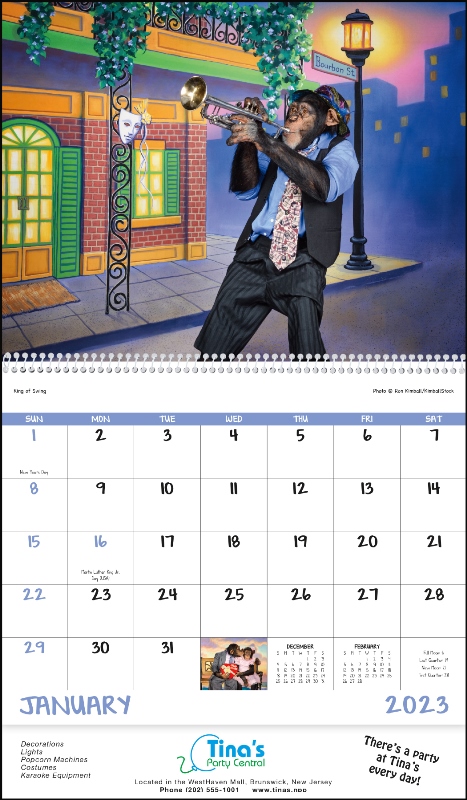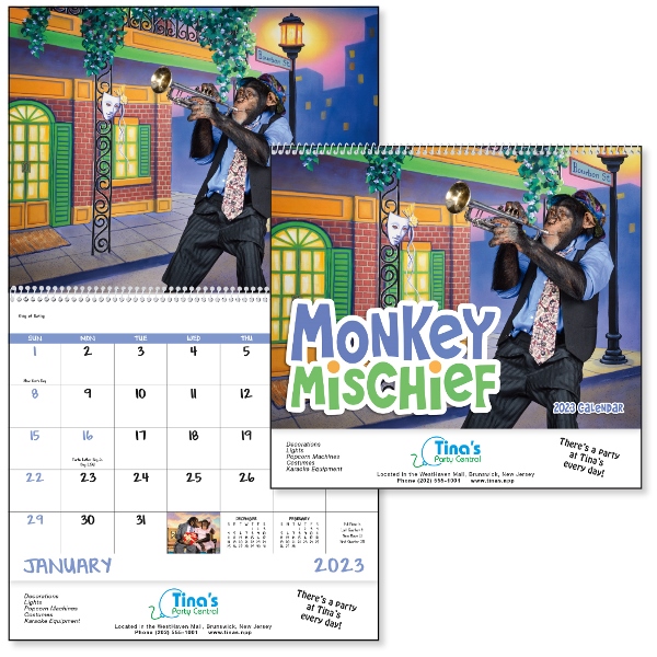 - Make customers laugh with funny monkeys in this creative, humorous calendar.