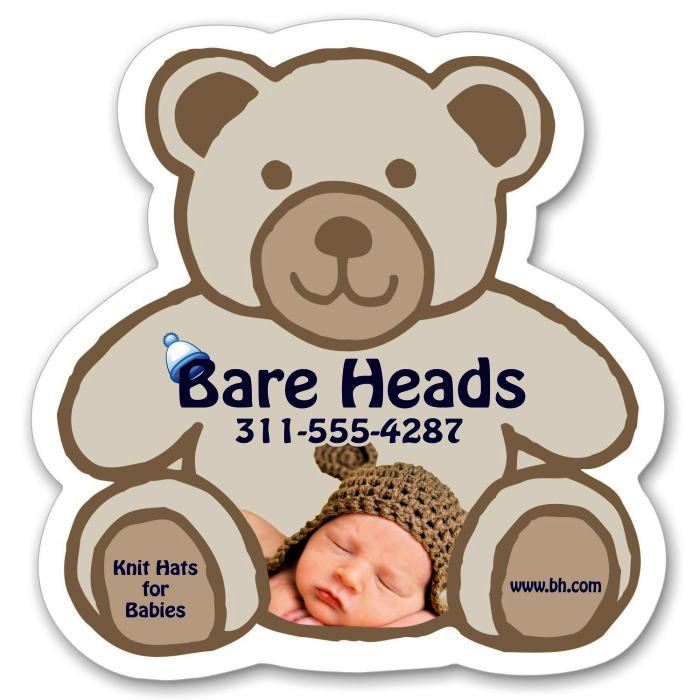 - Ideal for promoting care centers, family medical practices and toy stores, these jumbo teddy bear magnets measure 4 1/8 x 4 1/4. Always-in-stock and approximately 0.020 in thickness they can be customized with your company name, logo and specific message. The finished design makes for an eye-catching promotional product whether it's positioned on a filing cabinet or refrigerator. How can you bear not already having it in your collection?